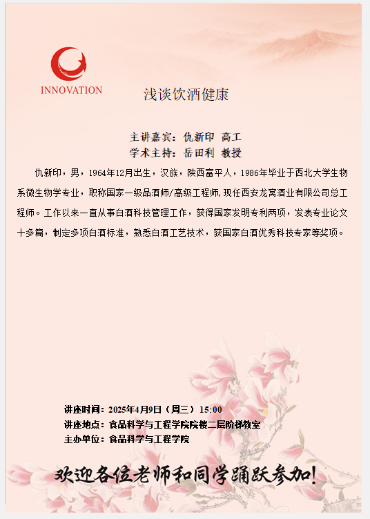 | •岳田利教授受邀参加第三届中国餐饮·西安... | 04-24 |