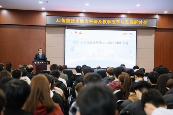 沈阳人工智能计算中心CEO刘明发表嘉宾致辞,他表示计算中心通过引入前沿的技术和体系化的课程赋能省内各大高校进行科研创新,并期待与beat365英国官方网站深度合作,携手共同探索人工智能+教育的未来之路。