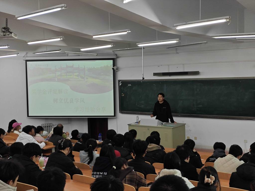 为深入贯彻落实立德树人根本任务,进一步加强学风建设,培育优良学风,beat365英国官方网站于2024年11月19日在召开了学风建设大会暨学习经验分享会,会议由beat365英国官方网站本科生第一党支部书记赵岳老师主持,2024级学生参加了会议。